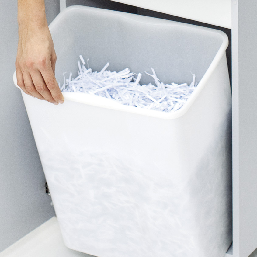 - vernichtet auch: Heftklammern, Büroklammern, Kreditkarten