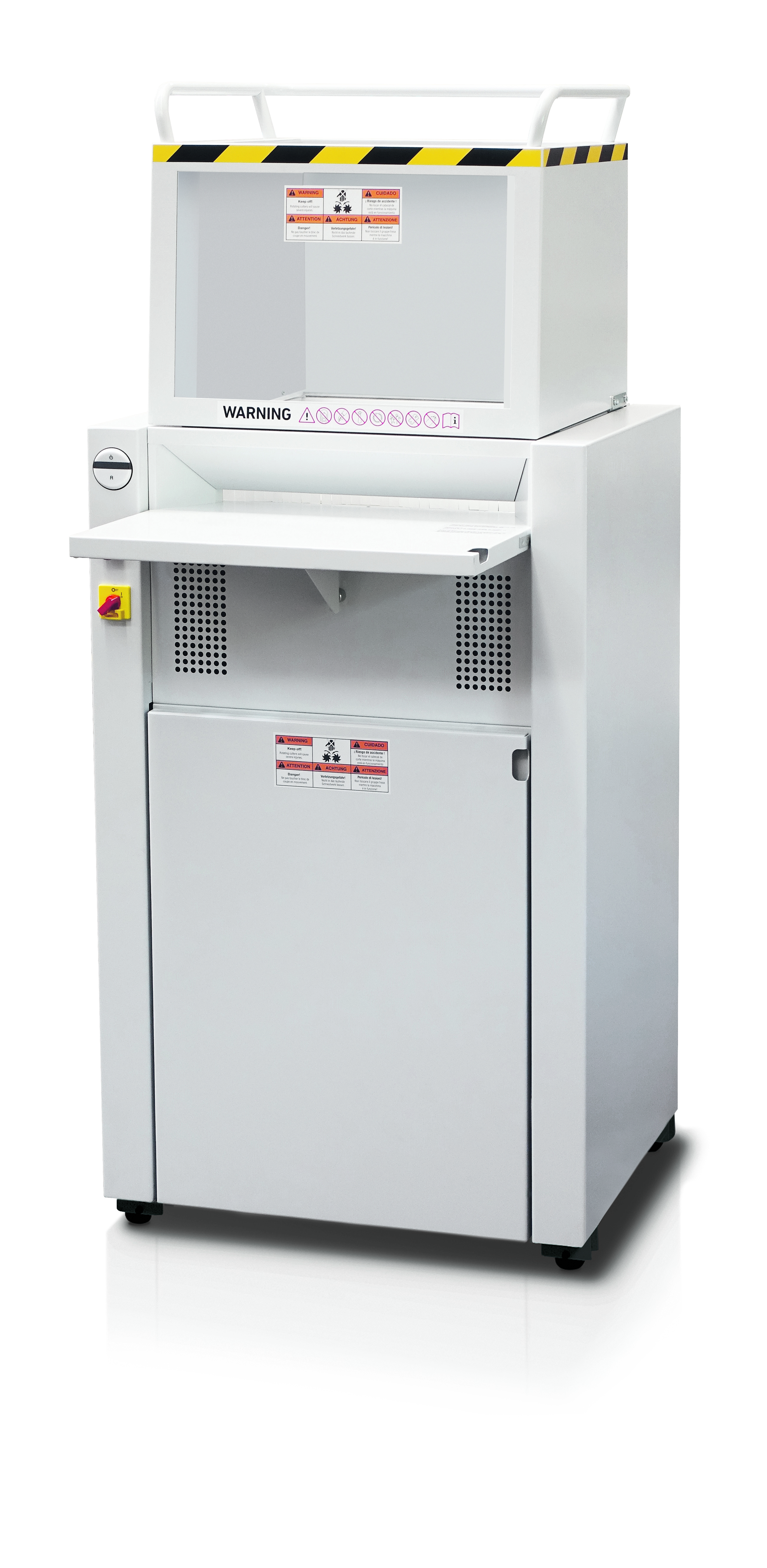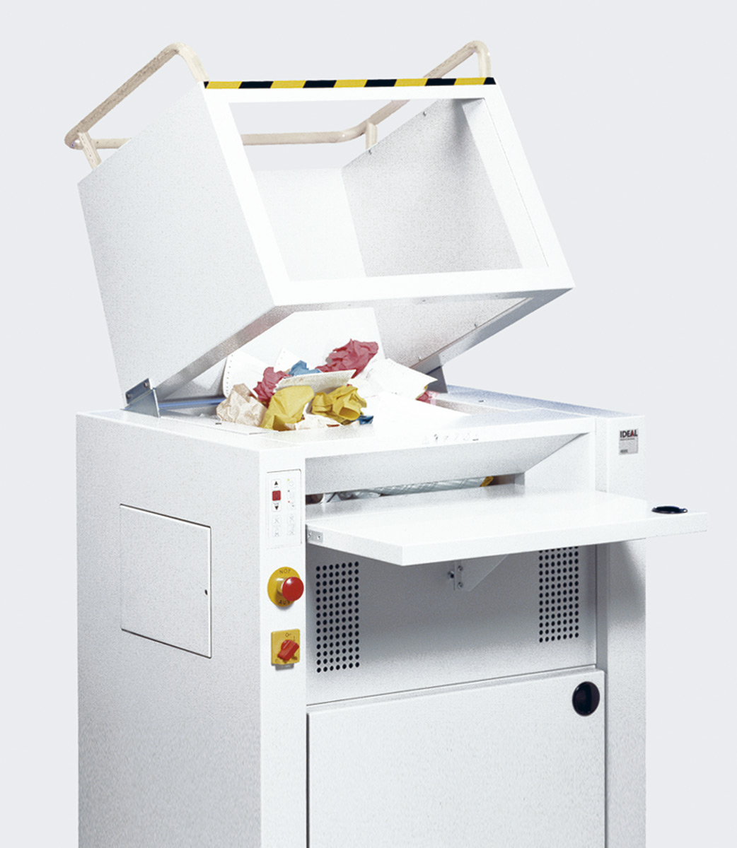 - vernichtet auch: Heftklammern, Büroklammern, Kreditkarten, CDs, Floppy Discs