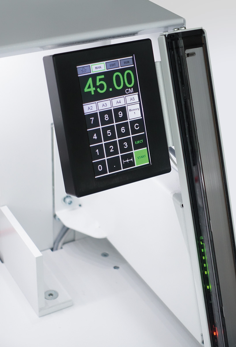 - automatische Pressung, elektro-mechanischer Schnitt, elektrischer Rückanschlag