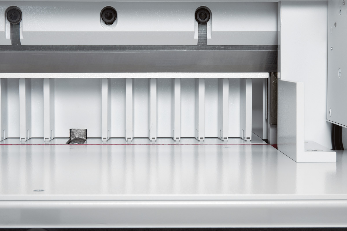 - Kézi leszorítás, elektro-mechanikus vágás, kézi papírkitolás